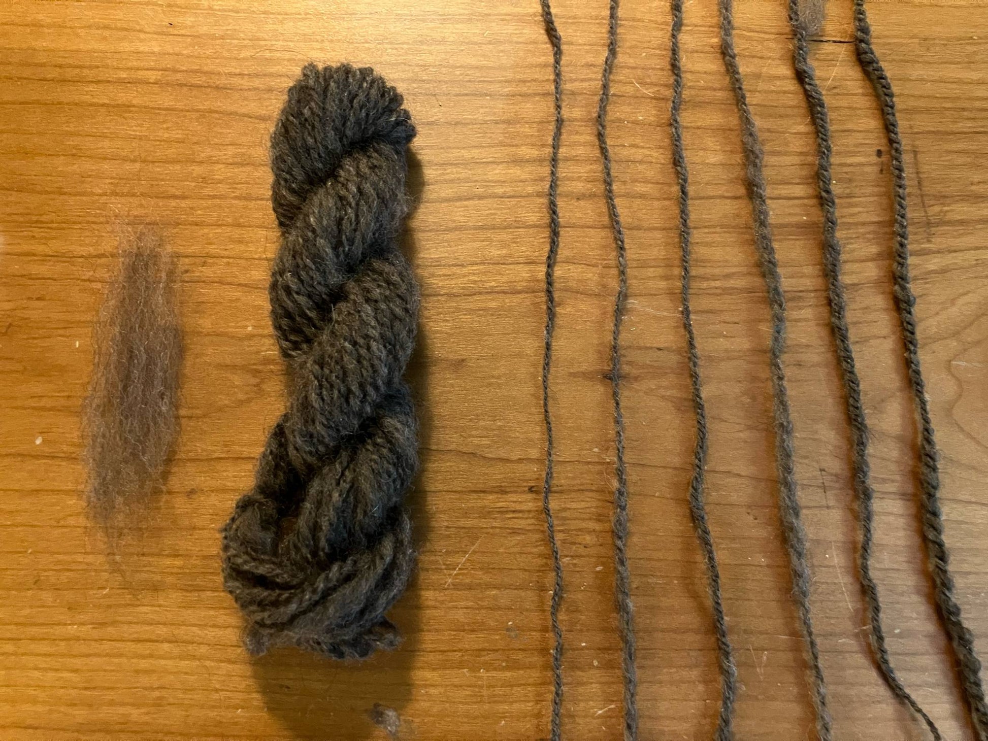 All the samples were nice yarns, showing the versatility of the fiber. The staple length appears to be about 3.5”.—quite reasonable for hand spinning.